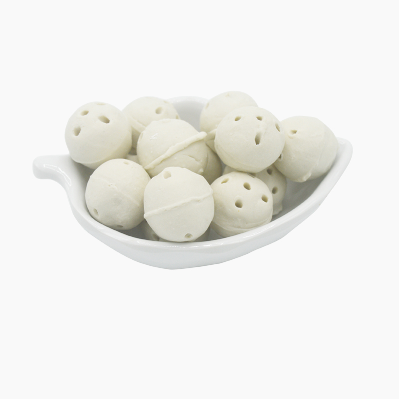 開孔瓷球是在惰性瓷球基礎(chǔ)上開發(fā)的新產(chǎn)品,它以球體直徑軸心進(jìn)行開孔,既具有如惰性瓷球那樣一定的機(jī)械強(qiáng)度、化學(xué)穩(wěn)定性和熱穩(wěn)定性,又增加了比表面積和空隙率,從而增加了物料的分散性和通量,降低了系統(tǒng)的阻力。開孔瓷球自投放市場(chǎng)以來,廣泛應(yīng)用于石油、化工和天然氣行業(yè)替代惰性瓷球作催化劑的覆蓋支撐填料。