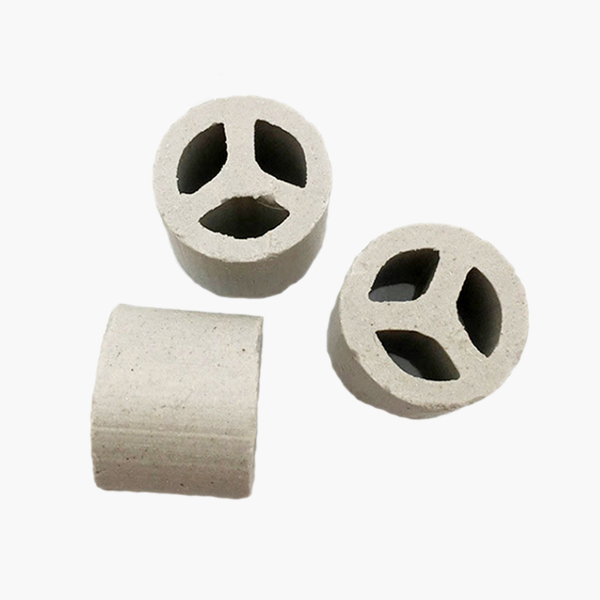 陶瓷三丫環(huán)填料是一種經(jīng)外觀獨(dú)特設(shè)計(jì)加工成的一種新型高效散堆填料,產(chǎn)品高徑比約為2:1,內(nèi)部設(shè)有一個(gè)或三個(gè)“Y”型隔板,這樣增大比表面積,提高了汽液分散性能,使汽液接觸更充分。三丫環(huán)填料是從階梯環(huán)、共鉅環(huán)、扁環(huán)、矩鞍環(huán)的基礎(chǔ)上以及在形狀、外觀和結(jié)構(gòu)綜合考慮,進(jìn)行取長補(bǔ)短而改進(jìn)的。
