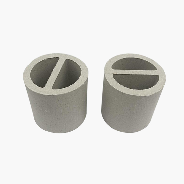 陶瓷一字環(huán)又被稱之為陶瓷勒辛環(huán)。它是在拉西環(huán)原有基礎(chǔ)上基于增加填料的比表 面積和強(qiáng)化傳質(zhì)效率的想法之上在其中間加入像漢字一的一般的隔板而設(shè)計(jì)出來的。形象化地稱它為一字環(huán)。陶瓷一字環(huán)是由陶瓷拉西環(huán)改良形成,比陶瓷拉西環(huán)有更大比表面積和更好的抗壓強(qiáng)度,擁有優(yōu)異的耐酸和耐熱性,能夠并且能耐除氫氟酸以外的各種無機(jī)酸、有機(jī)酸及有機(jī)溶劑的腐蝕,并能夠在高溫或者低溫的環(huán)境下使用,因此其使用范圍非常廣泛。